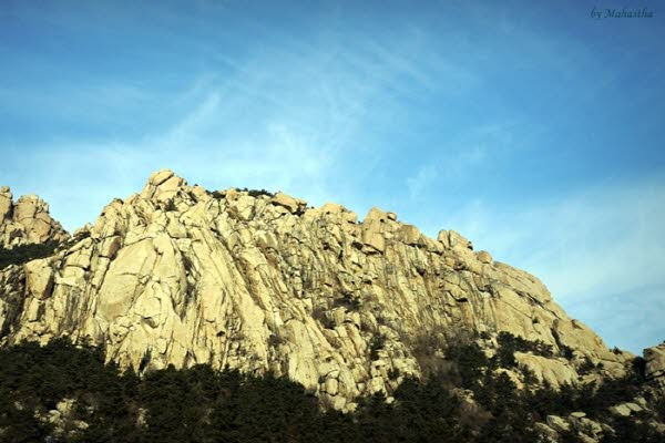 칭다오에서 대표적인 산은 노산이다. 악산이다. 설악산이나 관악산처럼 이름에 “악”자는 없지만 오르는데 악소리 나는 산이다. 지하 심부에서 녹은 암석이 천천히 오랜 시간 식은 다음 솟았다. 거대한 하나의 화강암 덩어리 산으로, 계속 이어지는 암체는 화강암들이다.