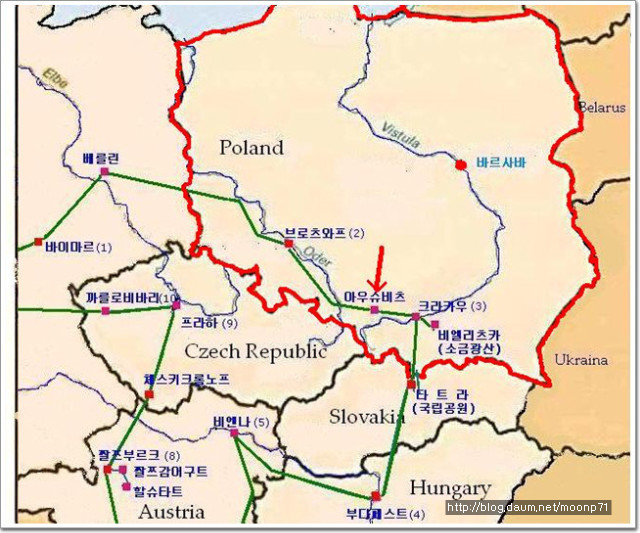 위치는 폴란드 바르샤바에서 약 300km