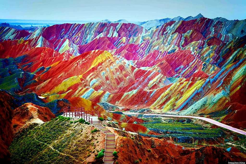다채로운 색층을 형성한 흙산을 단하지모(丹霞地貌) 이는 오랜 세월 동안 지질운동을