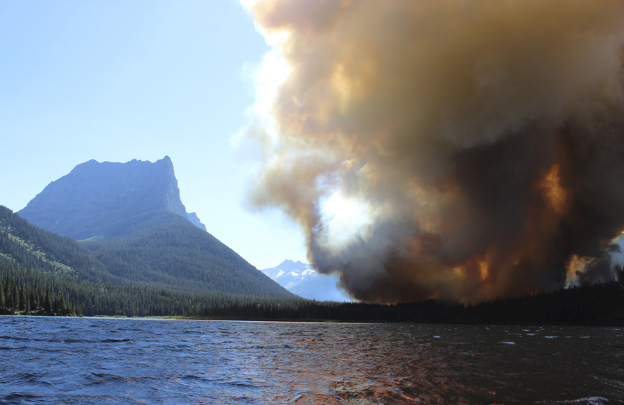 • The Reynolds Creek Wildland Fire burns in Glacier National Park, Montana, on July 21, 2015. Strong winds and warm temperatures slowed efforts to contain the wildfire, forcing campers to evacuate near the eastern entrance and closing part of an iconic roadway popular with tourists, officials said.