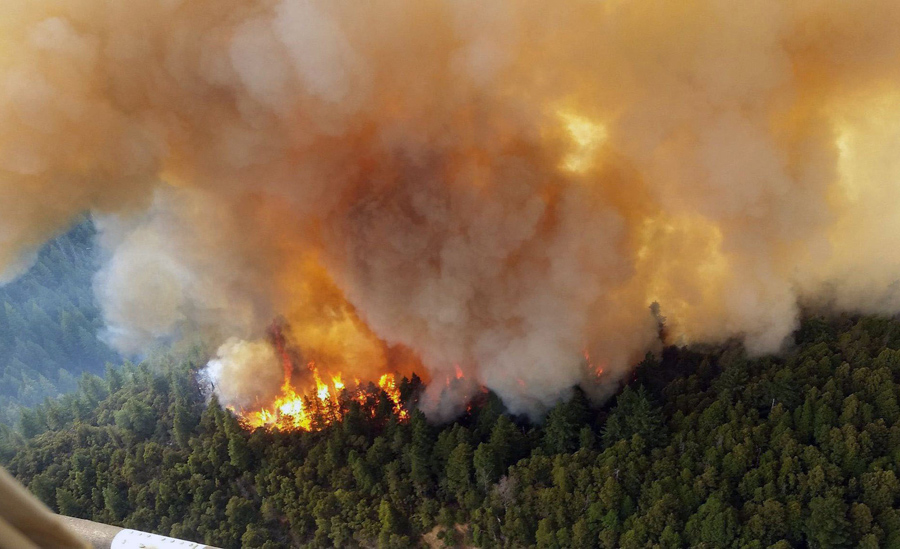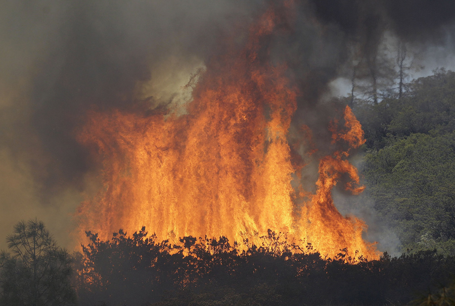 • Brush and trees burn in the Rocky Fire off Highway 20 near Clearlake, California, on August 2, 2015.