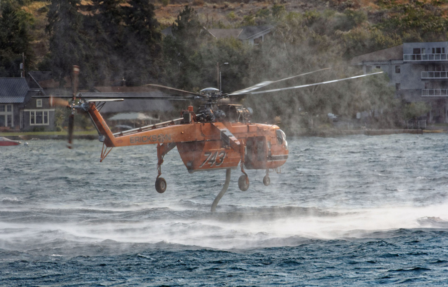 • A firefighting helicopter refills at the Chelan Butte Fire on August 14, 2015.