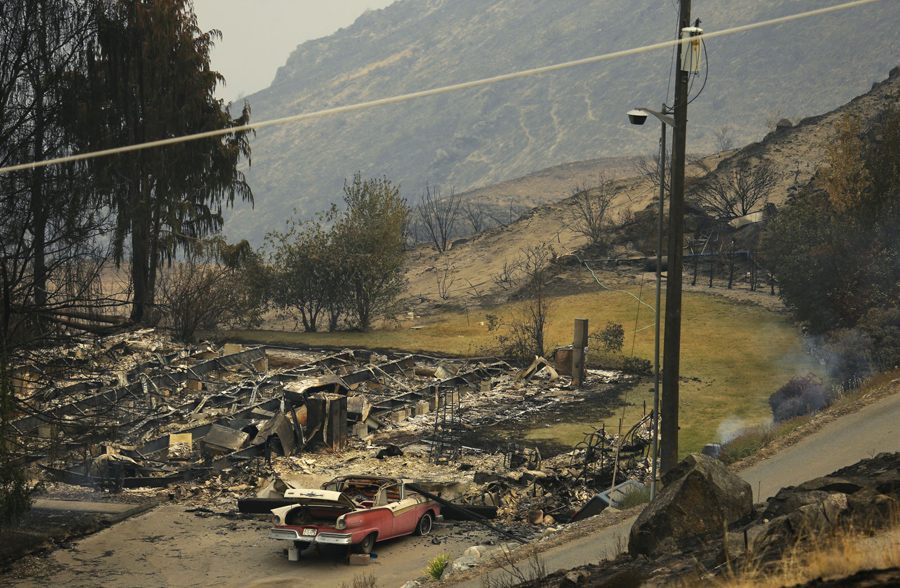 • A burned structure is shown along U.S. Route 97-Alternate on August 17, 2015, just outside of Chelan, Washington.