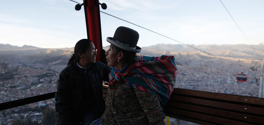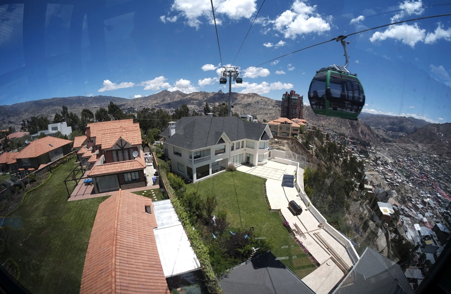 The city of La Paz, Bolivia, has long struggled with transportation issues. Steep terrain, high density, and narrow streets have resulted in years of traffic nightmares for fleets of minibuses and private taxis. In the past two years, the government has worked to alleviate this by building the largest urban cable-car system in the world. Currently La Paz has three urban ropeway lines in operation, stretching over 10 kilometers, with plans to triple the size of the network. The city recently announced six new lines, which will extend the aerial system to 30 kilometers and carry up to 27,000 passengers an hour.