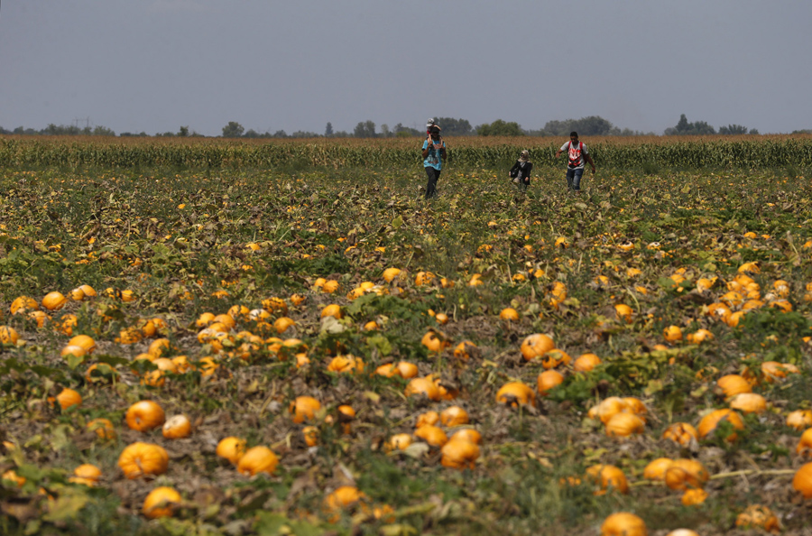In this photo taken on August 11, 2015, migrants from Syria trek through a field while on their way to cross the Serbian-Hungarian border in Horgos, Serbia. Serbia's border with EU-member Hungary has become a major crossing point for tens of thousands of migrants from the Middle East, Asia, and Africa who are using the so-called Balkan route to enter the EU while fleeing poverty and wars in their home countries.Darko Vojinovic / AP