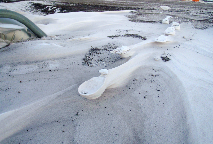 Raised footprints in the Antarctic snow. After a storm, the loose snow surrounding the compacted snow under a footprint is scoured away by the wind, leaving strange-looking elevated footprints.CC BY Alan R. Light