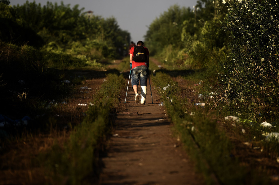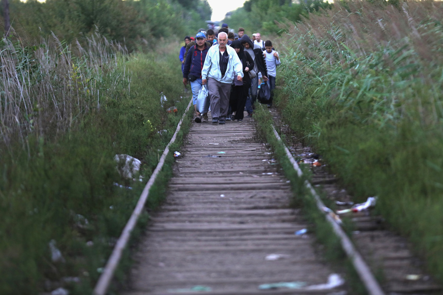 Hundreds of migrants and refugees continue to cross the border from Serbia into Hungary along the railway tracks close to the village of Roszke on September 6, 2015, in Szeged, Hungary.Christopher Furlong / Getty