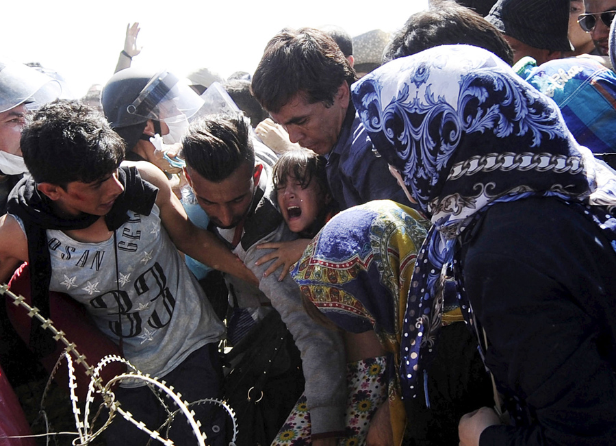 Migrants rush to cross into Macedonia after Macedonian police allowed a small group of people to pass through a passageway, as they try to regulate the flow of migrants at the Macedonian-Greek border on September 2, 2015. Up to 3,000 migrants are expected to cross into Macedonia every day in the coming months, most of them refugees fleeing war, particularly from Syria, the United Nations said last week.Ognen Teofilovski / Reuters