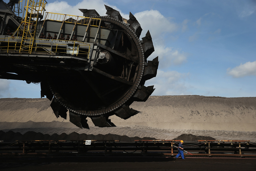 A worker walks past a bucket-wheel excavator in the Welzow Sued open-pit lignite coal mine on September 25, 2015, near Welzow, Germany. Before the communist government of East Germany collapsed in 1989, open-pit coal mines were a vital source of employment in the region, and their decline has pulled the local economy down with them. The Welzow Sued mine is one of five left in the Lausatz region from 17 that existed in 1989. It is scheduled to remain in operation until 2042.Sean Gallup / Getty A worker walks past a bucket-wheel excavator in the Welzow Sued open-pit lignite coal mine on September 25, 2015, near Welzow, Germany. Before the communist government of East Germany collapsed in 1989, open-pit coal mines were a vital source of employment in the region, and their decline has pulled the local economy down with them. The Welzow Sued mine is one of five left in the Lausatz region from 17 that existed in 1989. It is scheduled to remain in operation until 2042.Sean Gallup / Getty