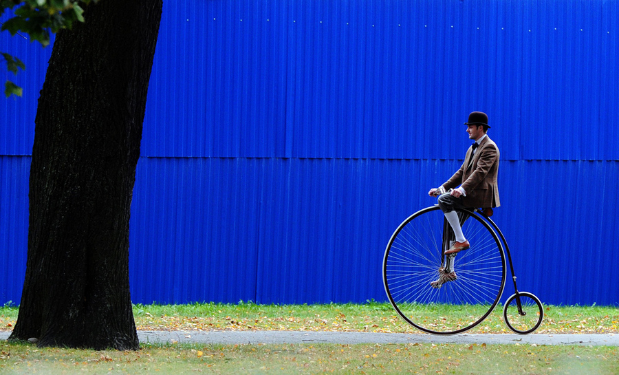 A cyclist dressed in vintage wear rides his bicycle through the streets of Russia's second-largest city, St. Petersburg, during the "Tweed Ride" on September 19, 2015.Olga Maltseva / AFP / Getty A cyclist dressed in vintage wear rides his bicycle through the streets of Russia's second-largest city, St. Petersburg, during the "Tweed Ride" on September 19, 2015.Olga Maltseva / AFP / Getty