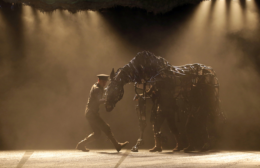 Chinese actors portray the horse from the Chinese theateer production of British play "War Horse" during a performance for the UK-China Year of Cultural Exchange at the National Theatre of China, in Beijing, on September 20, 2015.Jason Lee / AP Chinese actors portray the horse from the Chinese theateer production of British play "War Horse" during a performance for the UK-China Year of Cultural Exchange at the National Theatre of China, in Beijing, on September 20, 2015.Jason Lee / AP