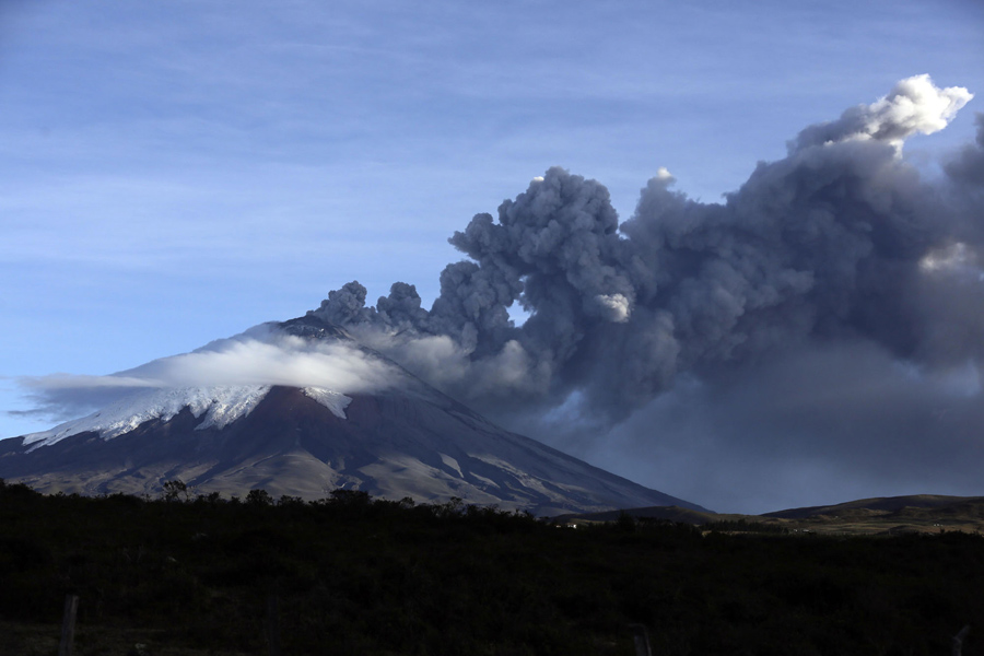The Cotopaxi volcano, seen from Loreto, Ecuador, on September 3, 2015, spews ash and vapor. Cotopaxi began showing renewed activity in April. Its last major eruption was in 1877.Dolores Ochoa / AP