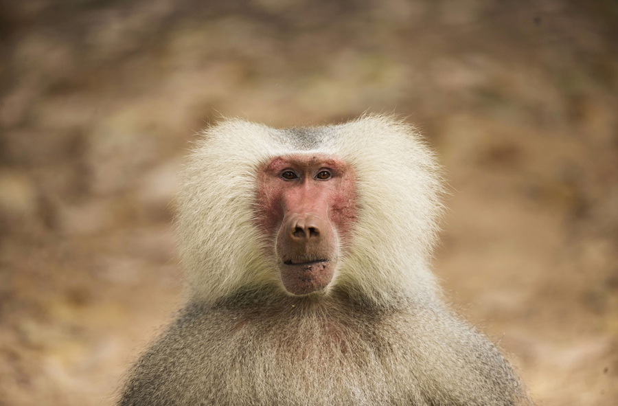 A male baboon (Papio hamadryas) at the Safari Zoo in Ramat Gan, near Tel Aviv, Israel, on September 9, 2015. For the first time at the zoo, a four-year-and-seven-month-old light-colored baboon gave birth to a female offspring, which has led zookeepers to believe that the very rare light-colored fur gene is likely to be passed on in their baboon troop, a press release said on Wednesday.Baz Ratner / Reuters