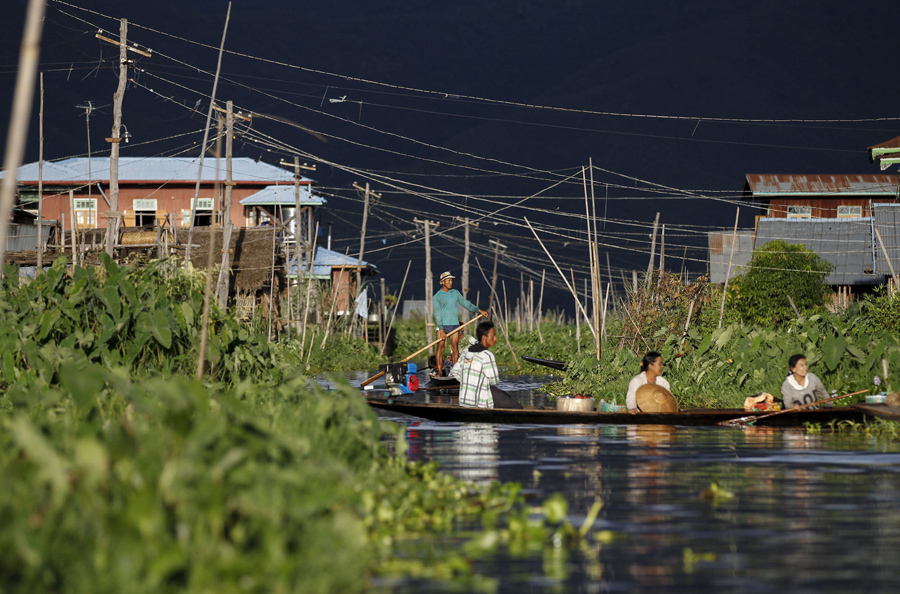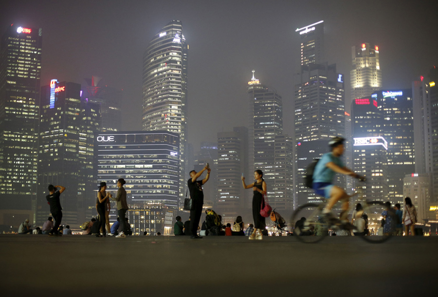 Students stand on the roof of a wooden boat as haze blankets the Musi River while they travel to school in Palembang, on Indonesia’s Sumatra Island, on September 10, 2015.Beawiharta / Reuters