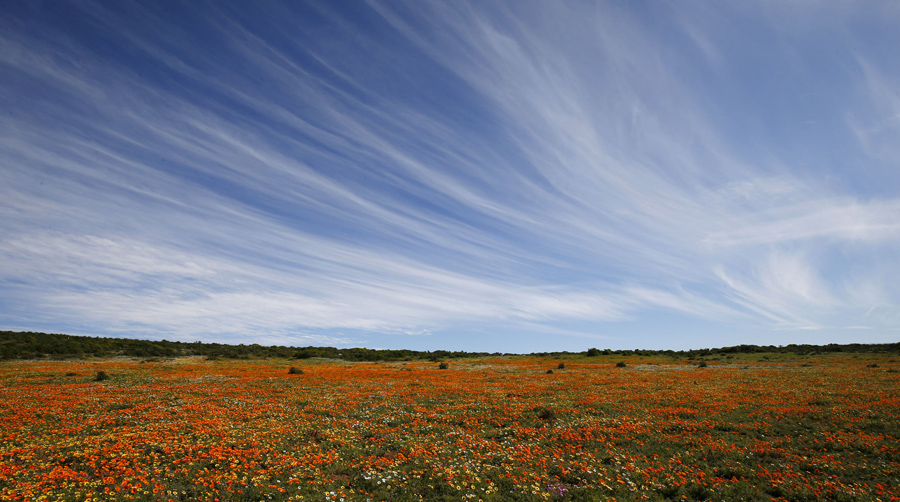 Wildflowers bloom in the Postberg section of South Africa’s West Coast National Park on September 6, 2015. Each year, visitors arrive in droves to witness carpets of flowers blooming across a normally arid region, heralding the coming Southern-Hemisphere spring.Mike Hutchings / Reuters