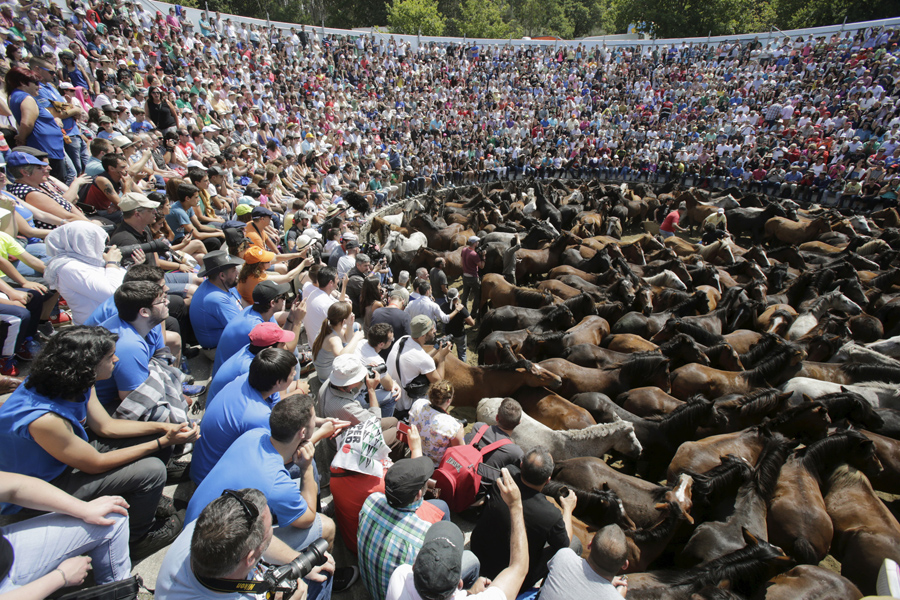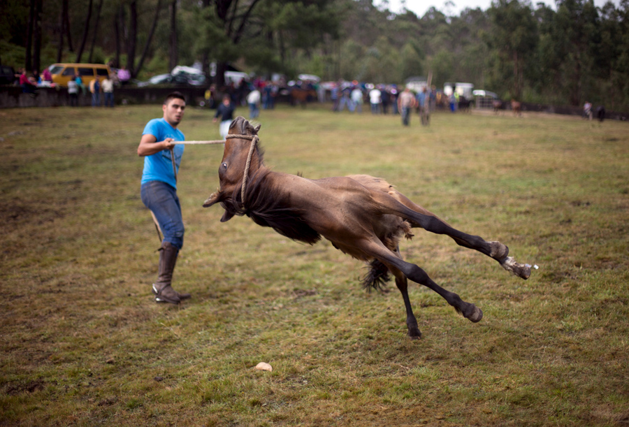 A man catches a wild horse during the “Rapa Das Bestas” event in Mougas, Spain, on June 14, 2015. Throughout the summer hundreds of wild horses are rounded up, trimmed, and groomed in different villages in Galicia.Miguel Vidal / Reuters