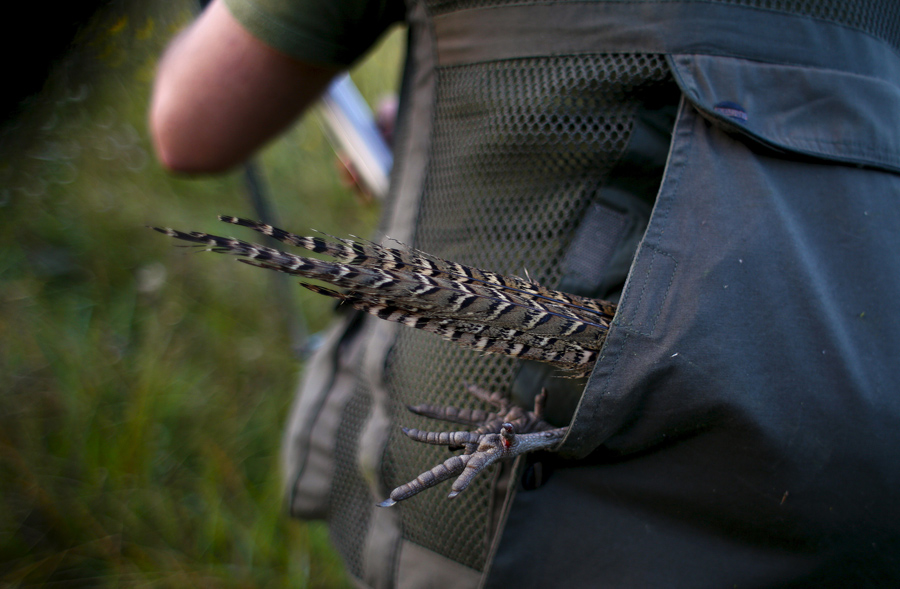 A hunter holds a shot pheasant in the back pocket of his jacket during the first day of the hunting season in Castell'Azzara, Tuscany, Italy, on September 20, 2015. The number of hunters in Italy has been decreasing, from 1,701,853 in 1980 to 751.876 in 2007, with a percentage reduction of 55.8 percent, according to the latest available numbers from the national statistics bureau ISTAT.Max Rossi / Reuters