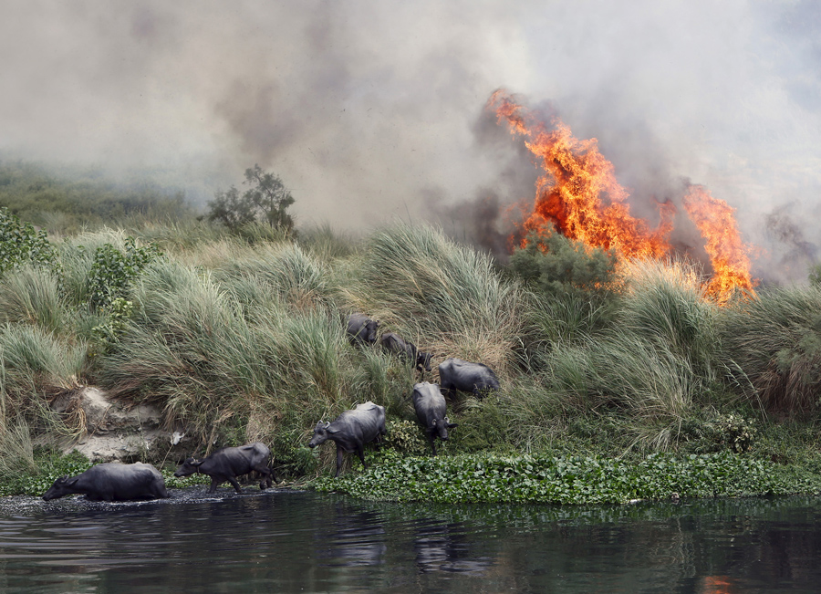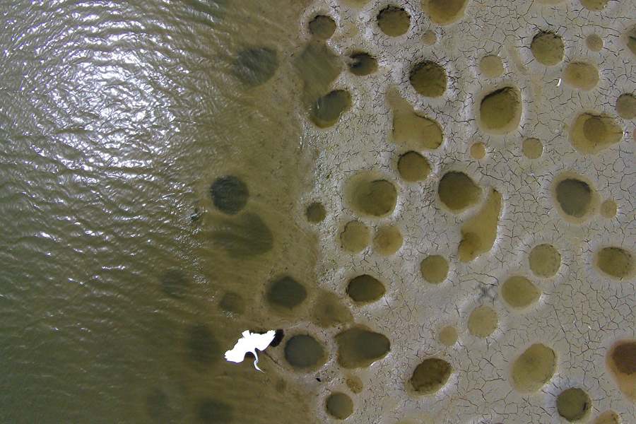 A white heron takes flight over exposed fish nests, normally inches below the waterline, in La Plata reservoir in Toa Alta, Puerto Rico, on June 19, 2015. Thanks to El Nino, a warming of the tropical Pacific Ocean that affects global weather, less rain fell to help refill Puerto Rico’s La Plata reservoir, as well as La Plata river in the central island community of Naranjito.Ricardo Arduengo / AP