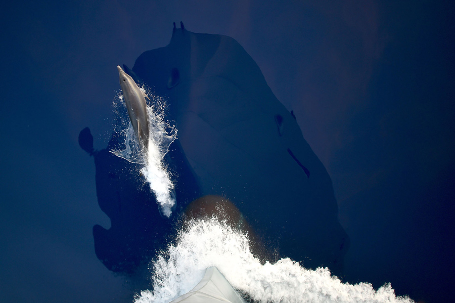 Dolphins swim in front of the German navy frigate ship Werra in the southern Mediterranean sea, on September 28, 2015. The frigate, part of the European external action service Eunavfor-Med, an EU naval operation against human smugglers in the Mediterranean, enables participants to board, search, seize, and divert vessels suspected of being used for human smuggling or trafficking on the high seas, in line with international law.Alberto Pizzoli / AFP / Getty