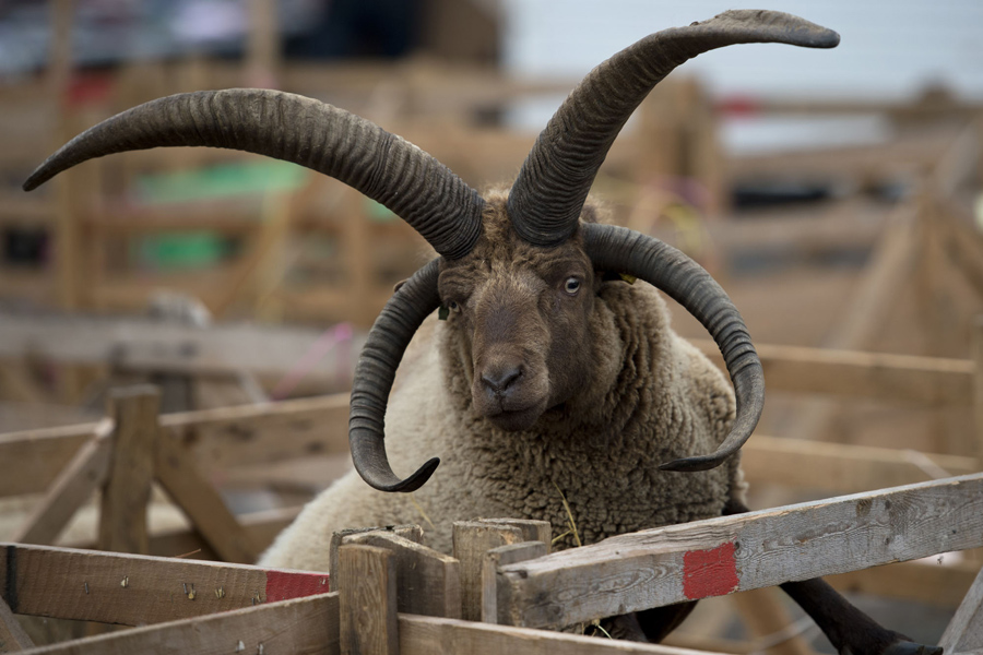 A Manx Loaghtan sheep looks out from its pen at the annual Masham Sheep Fair in Masham, England, on September 27, 2015. The Sheep Fair, which is marking its 30th anniversary, was founded to commemorate the sheep-market history of Masham’s market square, where, historically, as many as 70,000 sheep were sold each year.Oli Scarff / AFP / Getty