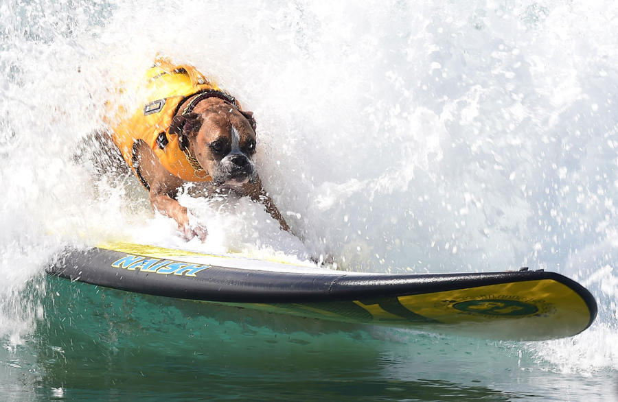 Dogs, big and small, and some in tandem or with their owners, participate in the 7th annual Surf City Surf Dog contest in Huntington Beach, California, on September 27, 2015.Frederic J. Brown / AFP / Getty