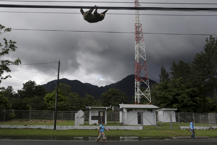 It’s time once again for a look at the animal kingdom and our interactions with the countless species that share our planet. Today’s photos include a sloth hanging around in Panama, reindeer herders in far northern Russia, an orangutan taking a wheelbarrow ride in Indonesia, a wild horse roundup in Spain, dolphins in the Mediterranean, flying foxes in India, orcas in Puget Sound, a leopard with its head stuck in a pot in India, and much more. These images and many others are part of this roundup of animals in the news from recent months, seen from the perspectives of their human observers, companions, captors, and caretakers, as part of an ongoing series on animals in the news.