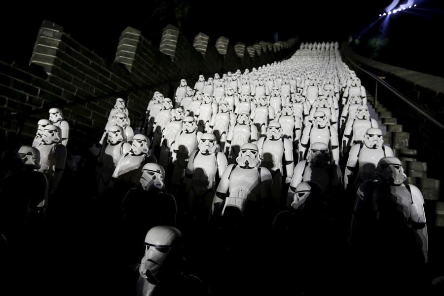 Five hundred replicas of the Stormtroopers characters from Star Wars on the steps of the Juyongguan section of the Great Wall of China during a promotional event forStar Wars: The Force Awakens, on the outskirts of Beijing, China, on October 20, 2015.Jason Lee / Reuters