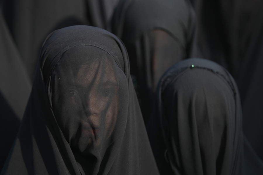 An Iraqi Shiite girl, whose face is covered with a veil, takes part in a parade in preparation for the peak of the mourning period of Ashura in Baghdad's northern district of Kadhimiya on October 22, 2015. Ashura mourns the death of Imam Hussein, a grandson of the Prophet Mohammed, who was killed by armies of the Yazid near Karbala in 680 AD.Ahmad Al-Rubaye / AFP / Getty