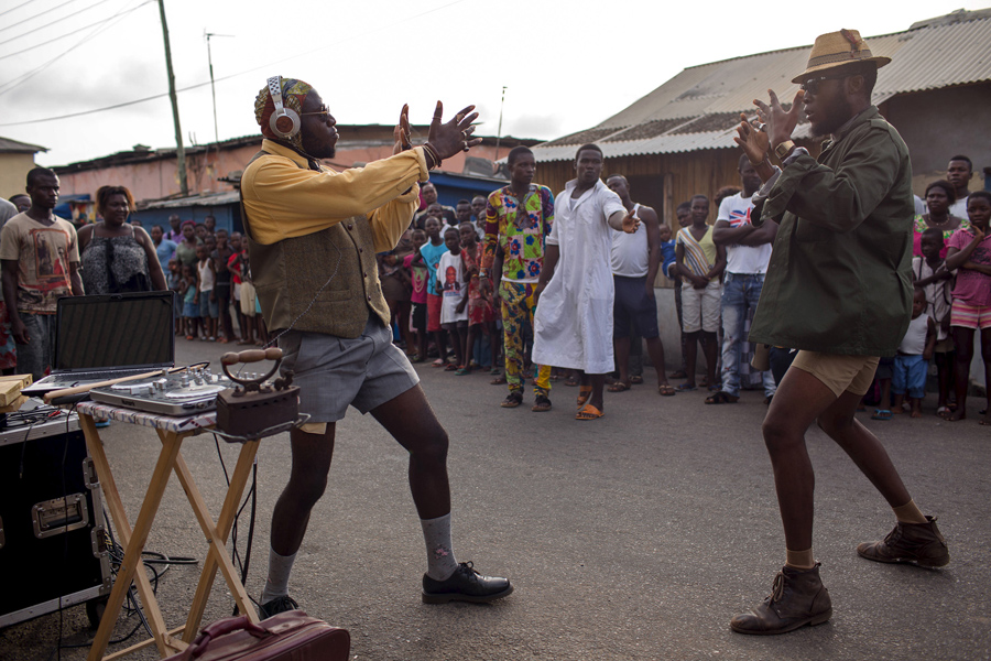 DJ Evans Mireku Kissi (left) plays experimental music during a street performance in Jamestown, Accra, Ghana, on June 12, 2015. Young artists in Ghana's capital have evolved a new style that is turning heads and challenging accepted notions of African fashion. Their passions span fine art, graphic design, music and, above all, clothes that attract notice in a city where most men wear conservative Western suits or, on special occasions, shirts made from traditional fabrics. "I like the fact that it is creating drama in the minds of the people," Kissi said. The group publishes selfies on social media, projecting their style to an audience far beyond Accra.Francis Kokoroko / Reuters