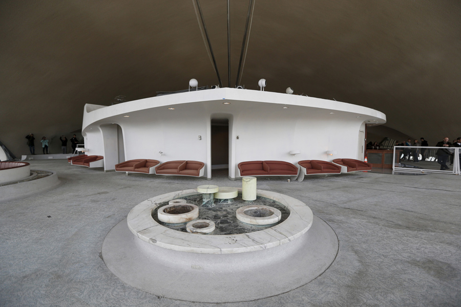The area outside the former Ambassadors Club is seen at the Trans World Airlines Flight Center at John F. Kennedy Airport in Queens, New York, on October 18, 2015. Thousands of visitors were expected at New York's John F. Kennedy Airport to get a last look at the iconic architecture of the Trans World Airlines Flight Center before the futuristic 1960s building is converted into a hotel.Shannon Stapleton / Reuters