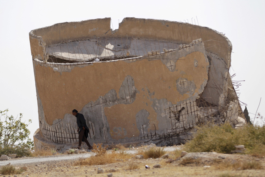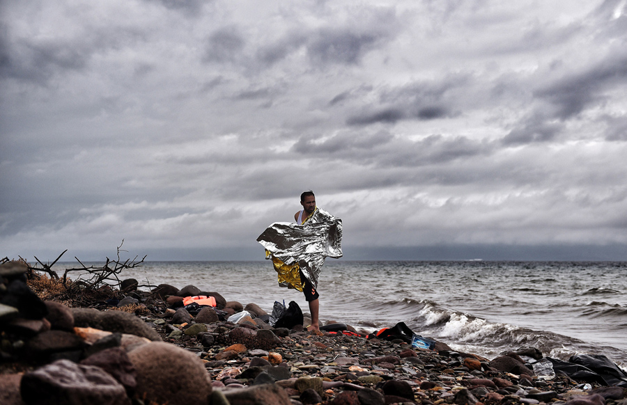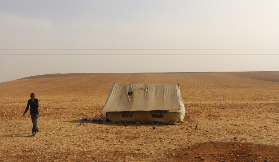 A Syrian man walks next to his tent in the southern countryside of the northern Syrian province of Aleppo, on October 21, 2015. Tens of thousands of Syrians have fled their homes south of the second city Aleppo since Syrian government forces began a new offensive south of Aleppo city on October 17, backed by Russian air strikes, a UN agency said.Fadi al-Halabi / AFP / Getty