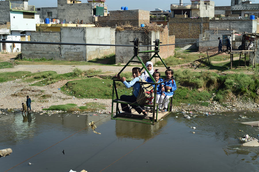 Residents cross a swelling dam, due to rising waters brought about by Typhoon Koppu, in Las Pinas city, metro Manila, Philippines, on October 19, 2015. Typhoon Koppu swept across the northern Philippines killing at least nine people as trees, power lines and walls were toppled and flood waters spread far from riverbeds, but tens of thousands of people were evacuated in time.Ezra Acayan / Reuters