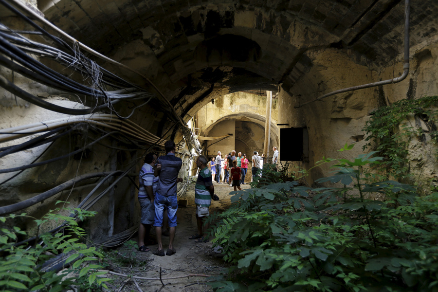 Visitors walk through a tunnel forming part of the old Malta Railway which was closed down in 1931 in Floriana, outside Valletta, Malta, on October 18, 2015. Locals and tourists flocked to see part of the network of tunnels which were opened to the public on Sunday for only the fifth time in a generation, according to local media.Darrin Zammit Lupi / Reuters