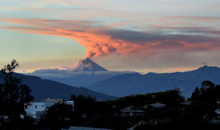 The Cotopaxi volcano, viewed from Quito, Ecuador, spews ash on October 8, 2015. The volcanic activity, which began August 14 after 138 years of silence, continued with “steam emissions and a moderate load of ash,” the country's Security Ministry said.Rodrigo Buendia / AFP / Getty