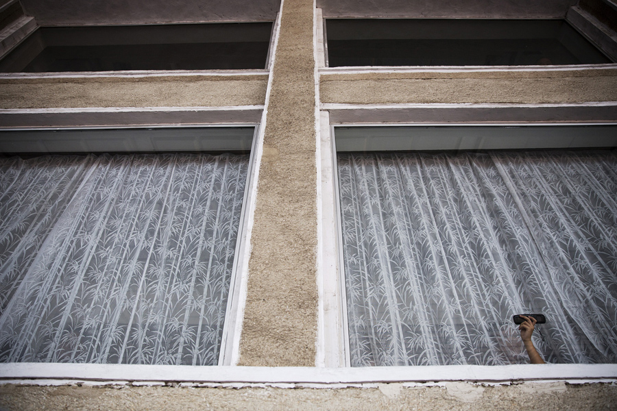 A woman films with her phone from behind a curtain at the Kim Il Sung Stadium as the North Korean national anthem is played before their team's preliminary 2018 World Cup and 2019 AFC Asian Cup qualifying soccer match against the Philippines in Pyongyang on October 8, 2015.Damir Sagolj / Reuters