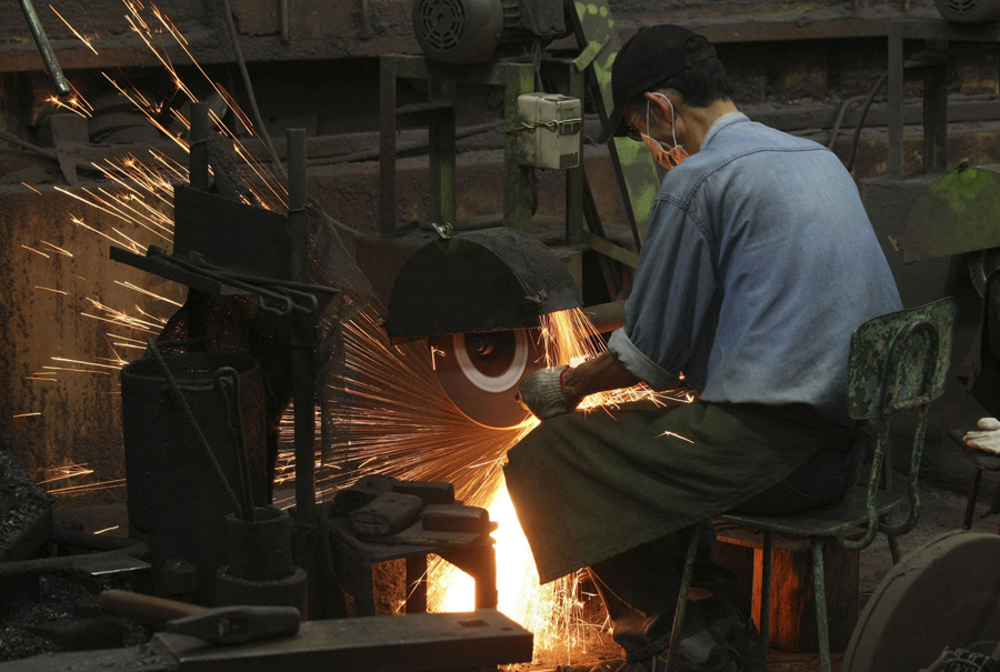 Wu Tseng-tong, of the Chin Ho-li Knife factory, displays knives he has crafted from recovered artillery shells on August 22, 2011, on the eve of the 53rd anniversary of a massive bombing campaign on Taiwan's Kinmen Island.Wally Santana / AP