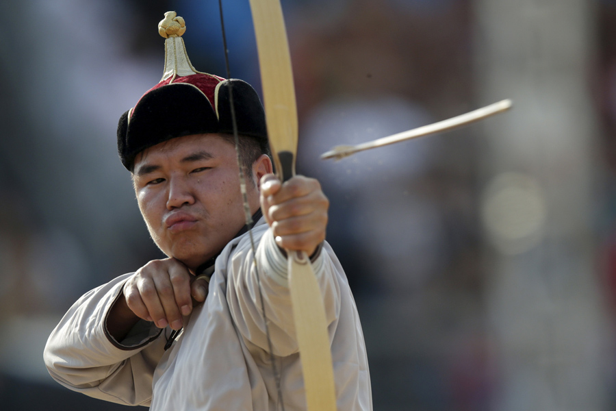A Native American from the United States takes part in the bow and arrow competition at the World Indigenous Games in Palmas, Brazil, on October 26, 2015. The event, which comes one year after Brazil played host to soccer’s World Cup and ahead of next year’s Olympics in Rio de Janeiro, kicked off on Friday.Eraldo Peres / AP