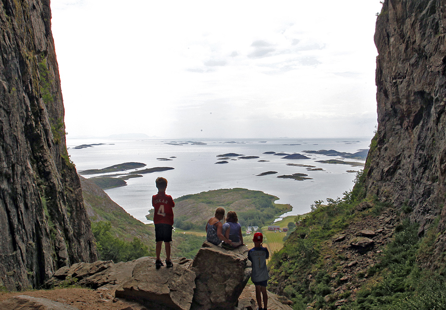 A view of islands from the hole in Torghatten, a mountain with a natural tunnel in its center, near Brønnøy-municipality Nordland, seen in 1889, and again (click to fade) in 2014.CC BY-NC-ND Axel Lindahl / Oskar Puschmann / Skog og landskap bildearkiv / Tilbakeblikk