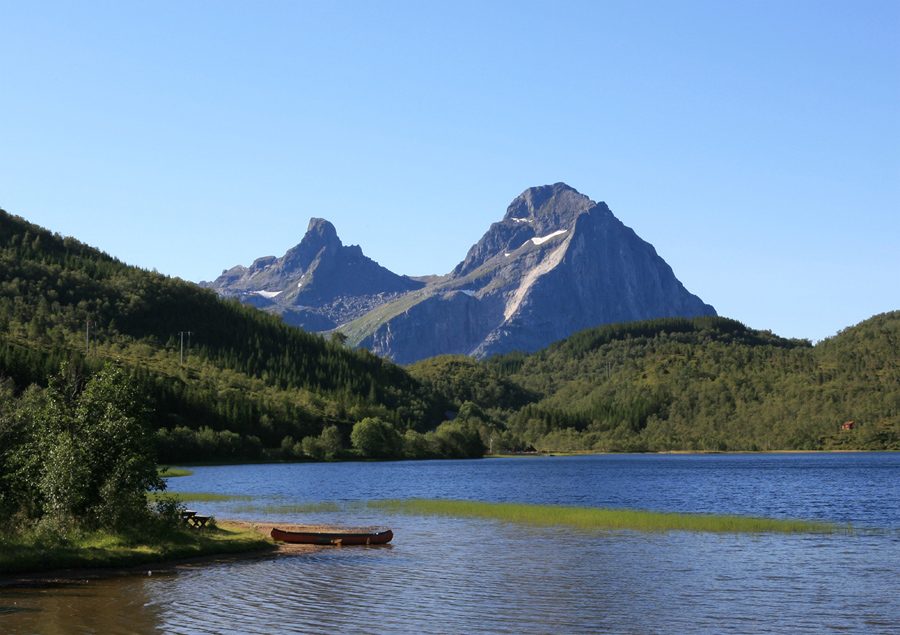 A scene near Ågvatnet, looking towards Blokktinden, Rødøy, Nordland, seen in 1885 and again (click to fade) in 2008.CC BY-NC-ND Axel Lindahl / Oskar Puschmann / Skog og landskap bildearkiv / Tilbakeblikk
