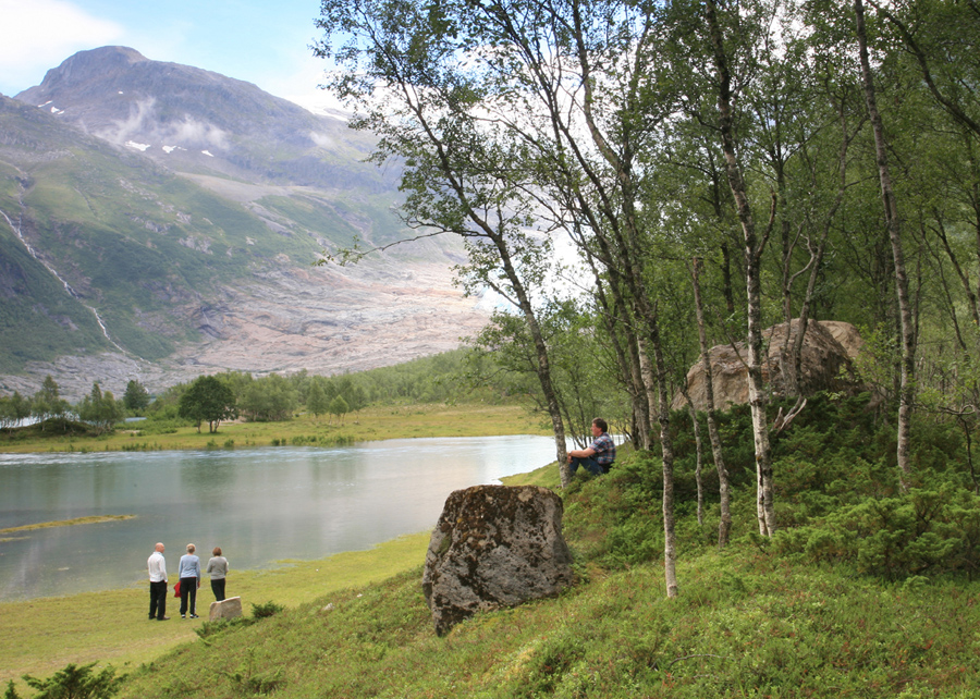 Engabreen Glacier at Holandsfjorden, Nord, in 1889, and again in 2010. Axel Lindahl’s picture of Engabreen from 1889 shows the foot of the glacier, where there was only ice, glacial gravel, water and bare mountainsides in a seemingly cold and hostile landscape. Now, more than 120 years later, the valley has become far more fertile. Birch forest, shore meadows, willow thickets and marshland have established themselves, while the glacier arm has retreated far back up the mountainside.CC BY-NC-ND Axel Lindahl / Oskar Puschmann / Skog og landskap bildearkiv / Tilbakeblikk