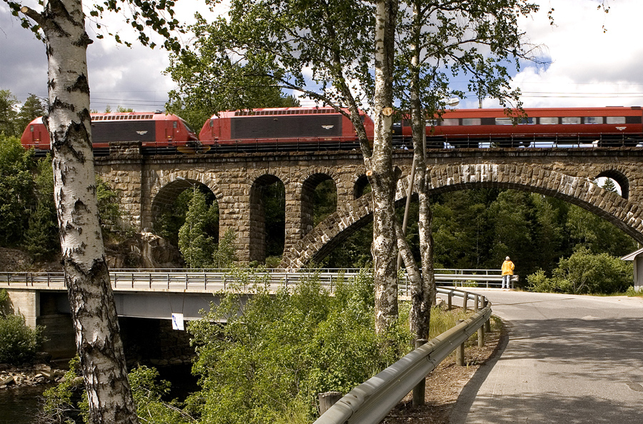 Kjeåsen Railway Bridge, Drangedal, Telemark, photographed in 1927 and again in 2008 (click to fade). The older image shows Kjeåsen Bridge on December 2, 1927 – the day the Sørlandet Line’s Nordagutu-Neslandsvatn and the Kragerø Line were opened.CC BY-NC-ND Anders Beer Wilse / Oskar Puschmann / Skog og landskap bildearkiv / Tilbakeblikk