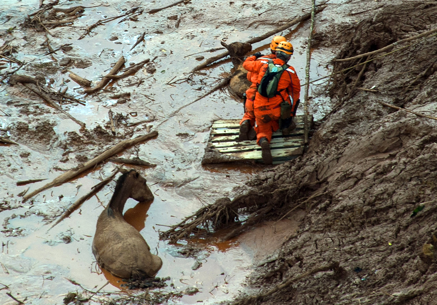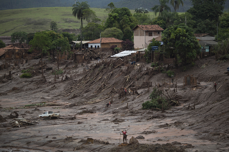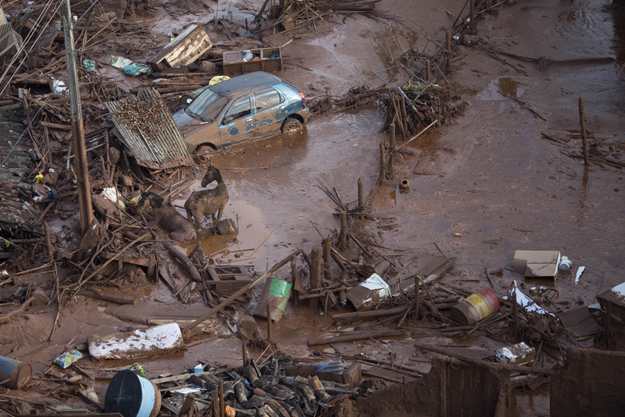 On November 5, two dams retaining tons of iron-mining waste near the Brazilian town of Bento Rodrigues burst, releasing a massive flood of thick, red toxic mud that flattened buildings and trees, smothered the small town, killed at least four, and left another 28 still missing. The dams are operated by the mining company Samarco, which is jointly owned by two larger mining companies: Vale, from Brazil and BHP Billiton, from Australia. Rescue workers are still searching for survivors as both Samarco and Brazilian authorities have issued statements saying the cause and full extent of the disaster remain undetermined.