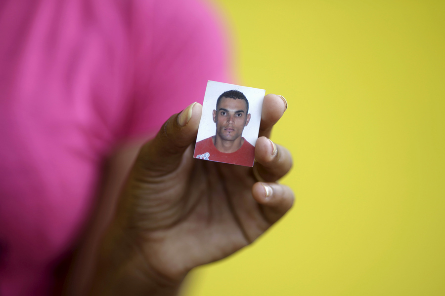 Jaqueline da Aparecida Fernandes shows the picture of her brother Mateus Marcio Fernandes, 29, who is missing since the dam where he worked burst in Mariana, Brazil, on November 7, 2015.Ricardo Moraes / Reuters