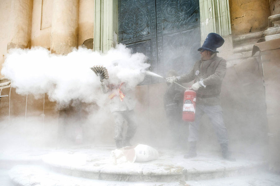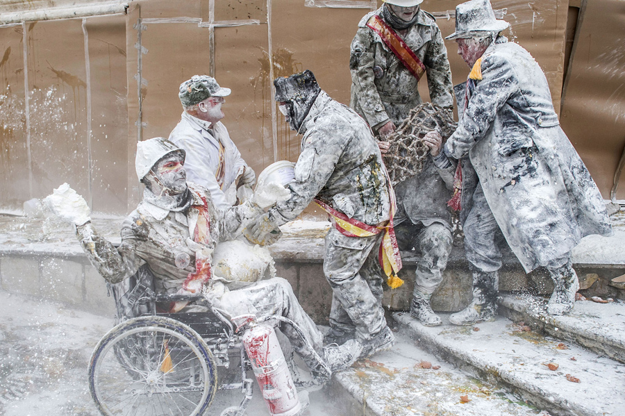 In a tradition that dates back more than 200 years, the town of Ibi, Spain, celebrates thefestival of Els Enfarinats on December 28th with a mock battle taking place outside the town hall. Participants attack each other with eggs, flour, firecrackers, fire extinguishers, and more. The annual battle involves an a group of married men called “Els Enfarinats,” who stage a coup, taking over the town, declaring and enforcing ridiculous new laws—and “La Oposicio,” another group who try to restore order. At the end of the day, any money collected in fines by “Els Enfarinats” is donated to charity.