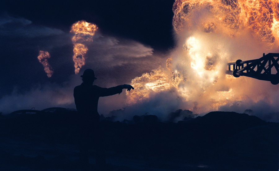 Red Adair’s fire-fighting crews at work on April 1, 1991, beside a blown-out well damaged by retreating Iraqi soldiers in Al-Ahmadi oil field in southern Kuwait.Pascal Guyot / AFP / Getty