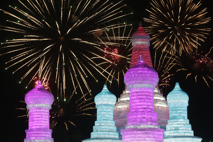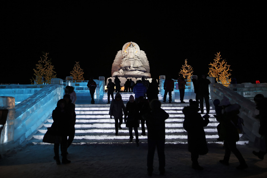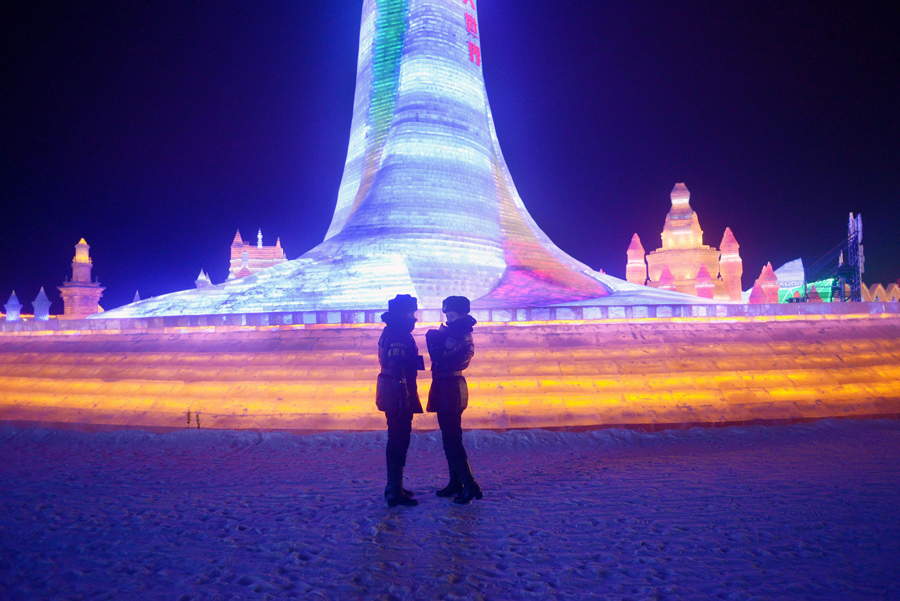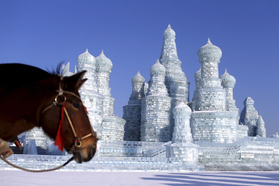 Every year, in northeast China's Heilongjiang province, the city of Harbin hosts the Harbin International Ice and Snow Sculpture Festival, featuring massive ice and snow sculptures—more than a million visitors are anticipated this year. At night, the sculptures are colorfully illuminated and visitors can climb and play on some of the structures. The festival officially opened on January 5, and will run through the end of February.