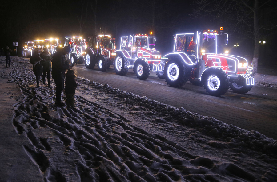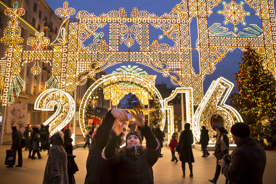 Bosnian people dress up in Santa Claus costumes as they travel on a motorbike through the main street in Banja Luka, 240 kms northwest of Sarajevo, Bosnia, on December 30, 2015, to mark the upcoming New Year and Orthodox Christmas.Radivoje Pavicic / AP