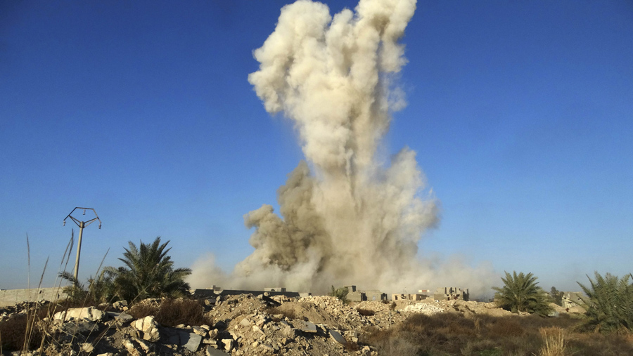 Smoke rises after Iraqi Security forces blew up a car bomb belonging to a suicide bomber with Islamic State group at Huz neighborhood in downtown Ramadi, 70 miles (115 kilometers) west of Baghdad, Iraq, on December 26, 2015. Iraqi forces entered the Huz at dawn, an area housing a government compound in the center of Ramadi, part of a major offensive aimed at dislodging the Islamic State terrorist militia from the western city, an Iraqi official said.Osama Sami / AP