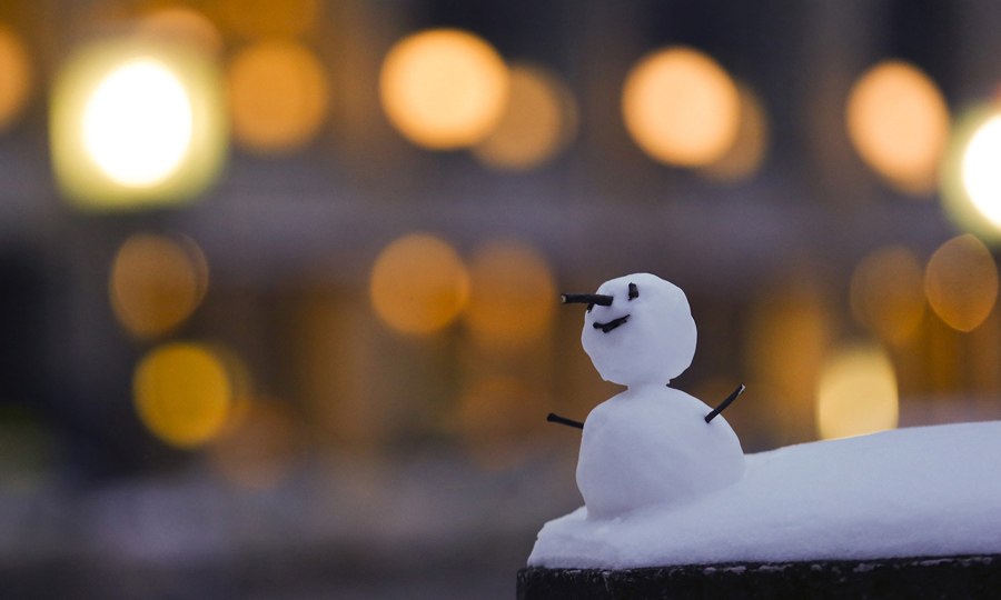 A man dressed as a cartoon character dances in front of snow sculptures during the Harbin International Ice and Snow Festival in Harbin, northeast China's Heilongjiang province on January 5, 2016.Wang Zhao / AFP / Getty