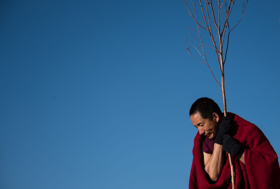 A lama watches the Cham dance during the Gedong festival at the Ganden Sumtsenling Monastery in Shangri-La, Diqing Tibetan Autonomous Prefecture of southwest China's Yunnan Province on January 5, 2016. The Gedong Festival is the most important festival in the region and is held at the Ganden Sumtseling Monastery, also known as Songzanlin, and Guihuasi monastery in late November of each year of the Tibetan calendar.Johannes Eisele / AFP / Getty